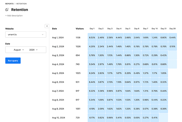 Umami is a modern web analytics platform that provides essential website insights while prioritizing user privacy. It offers a clean, intuitive interface for tracking website visitors and behavior without compromising on data protection or performance.
